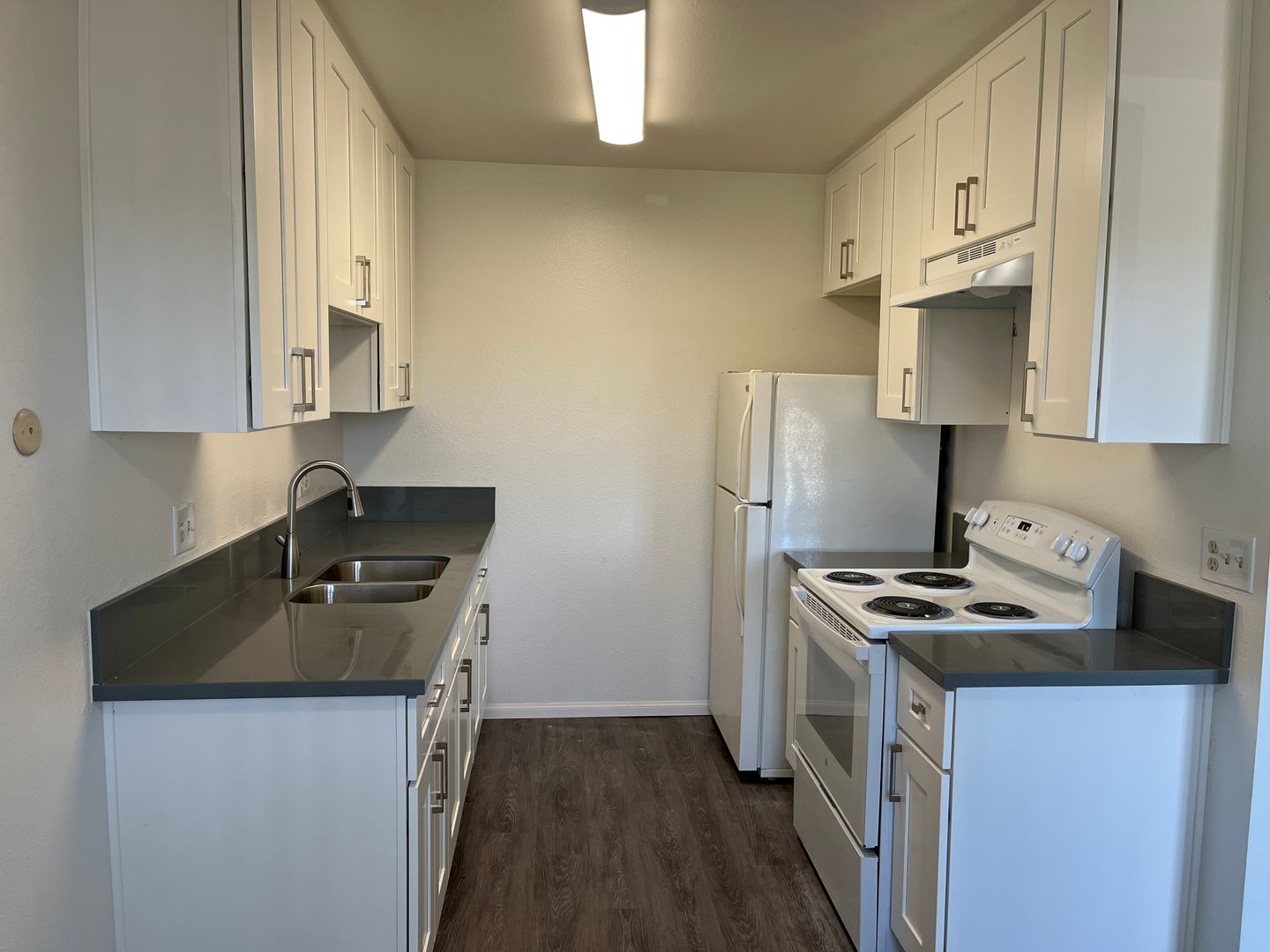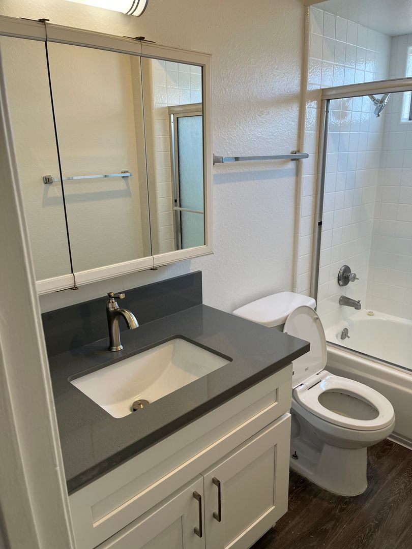 Beautiful large 1br/1ba unit in a charming park like setting complex with brand new kitchen and bathrooms, plank flooring, BBQ and picnic tables, appliances including stove, fridge, A/C, on-site laundry, off-street parking, Near great schools and parks.