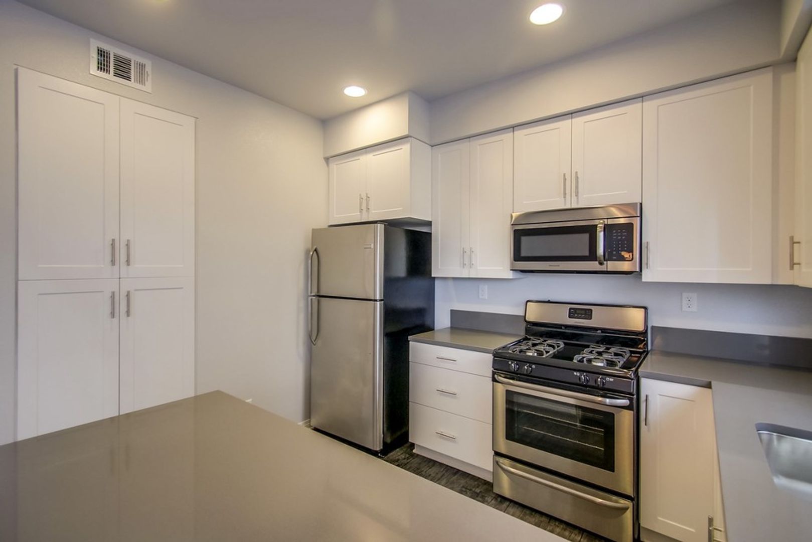 Raintree's 4 bedroom 3 bathroom units include a beautiful kitchen island, Quartz countertops, white shaker style cabinetry, gourmet stainless steel appliances (stove, fridge, microwave and dishwasher). Enjoy the huge great room with eating area and balcony.
